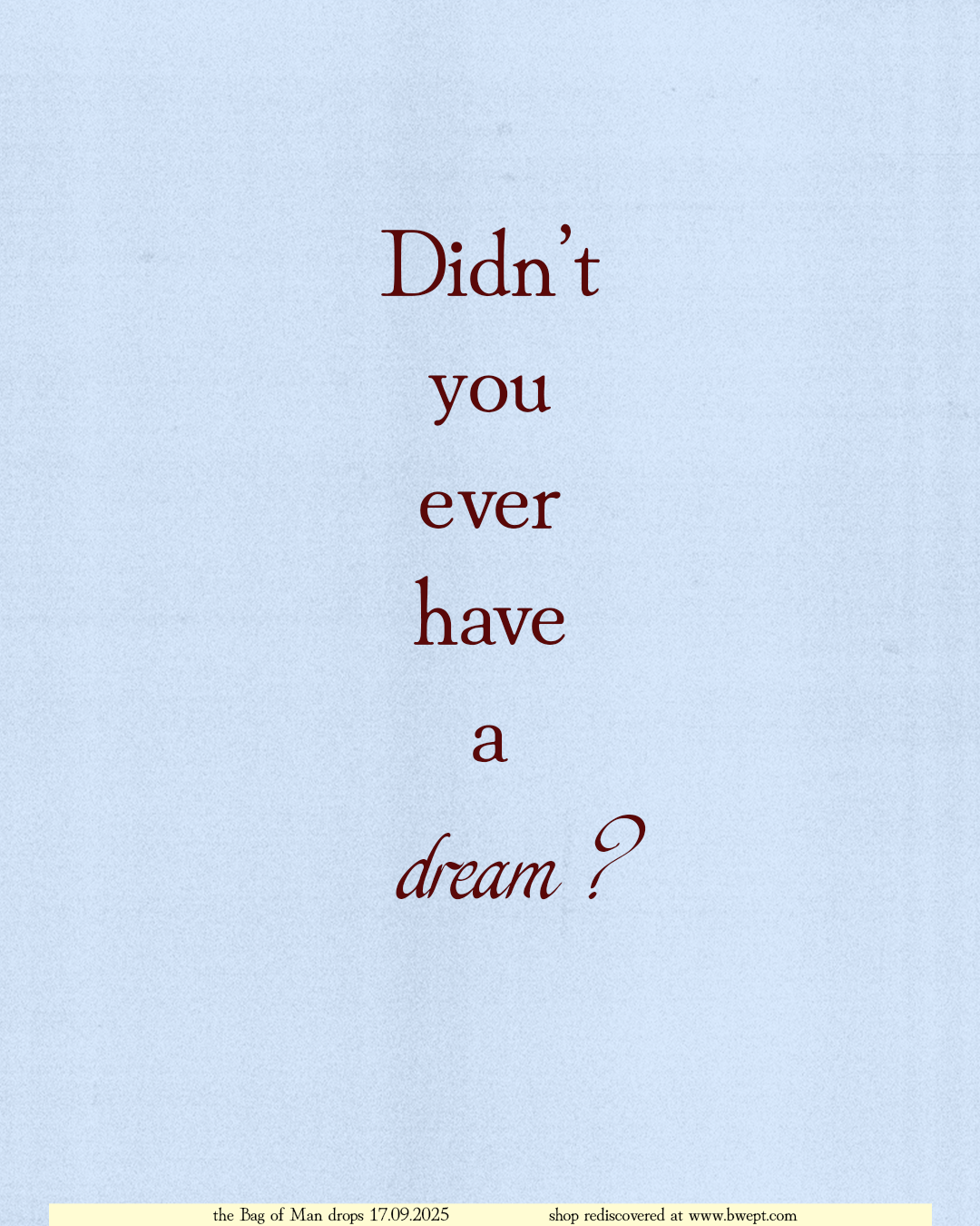 COINCIDING WITH THE BEGINNING OF BEWEPT, WE BRING YOU THE BAG OF MAN.